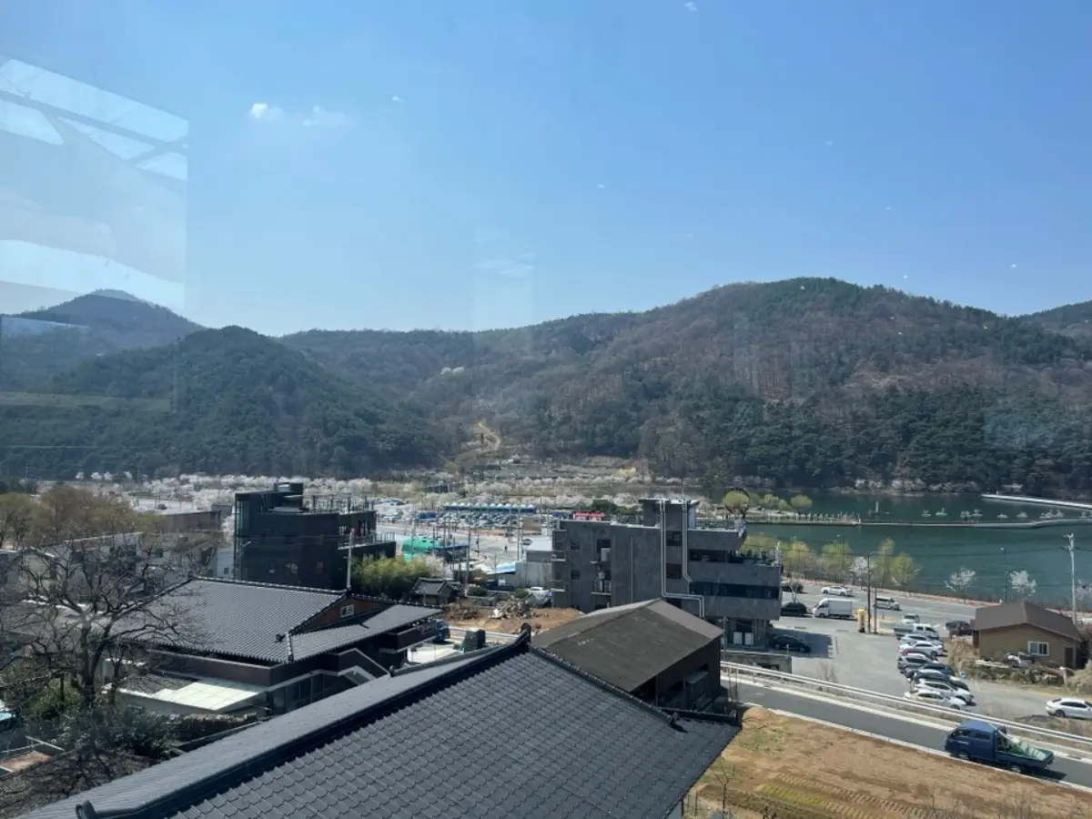 2층에서 보는 뷰도 좋았어요. 옥연지도 보이고 옥연지 주위로 예쁘게 피어난 벚꽃도 보이고요. 바토 플루이르 카페가 살짝 언덕쪽에 자리잡고 있어서 더 뷰가 좋은 것 같아요. 이날따라 날씨도 너무 좋았거든요. 그런데 이런 뷰는 비오는 날 와도 너무 분위기 있을 것 같지 않나요? 비가 내리는 날 창가에 앉아서 따뜻한 차한잔 마시면서 밖을 보면 너무 좋을 것 같아요.