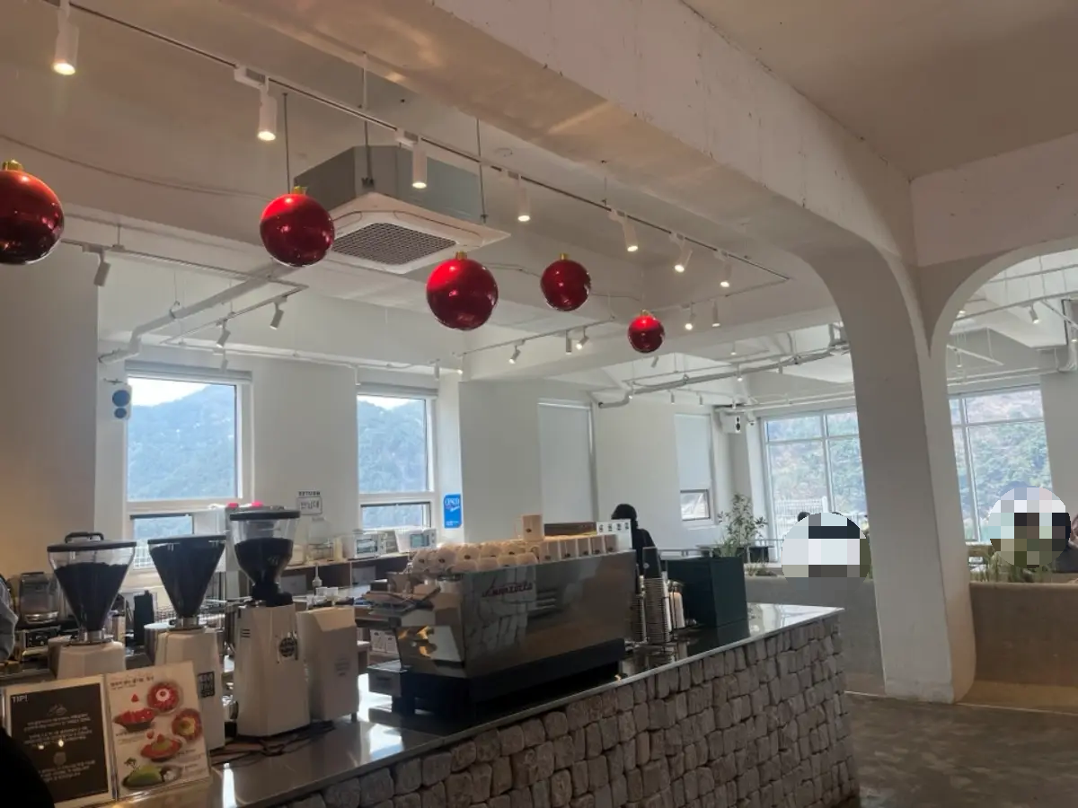 카페 들어서자마자 보이는 뷰입니다. 뷰 정말 예쁘죠? 한참 서서 창밖으로 보이는 풍경을 바라봤어요. 연신 카메라로 찍어면서