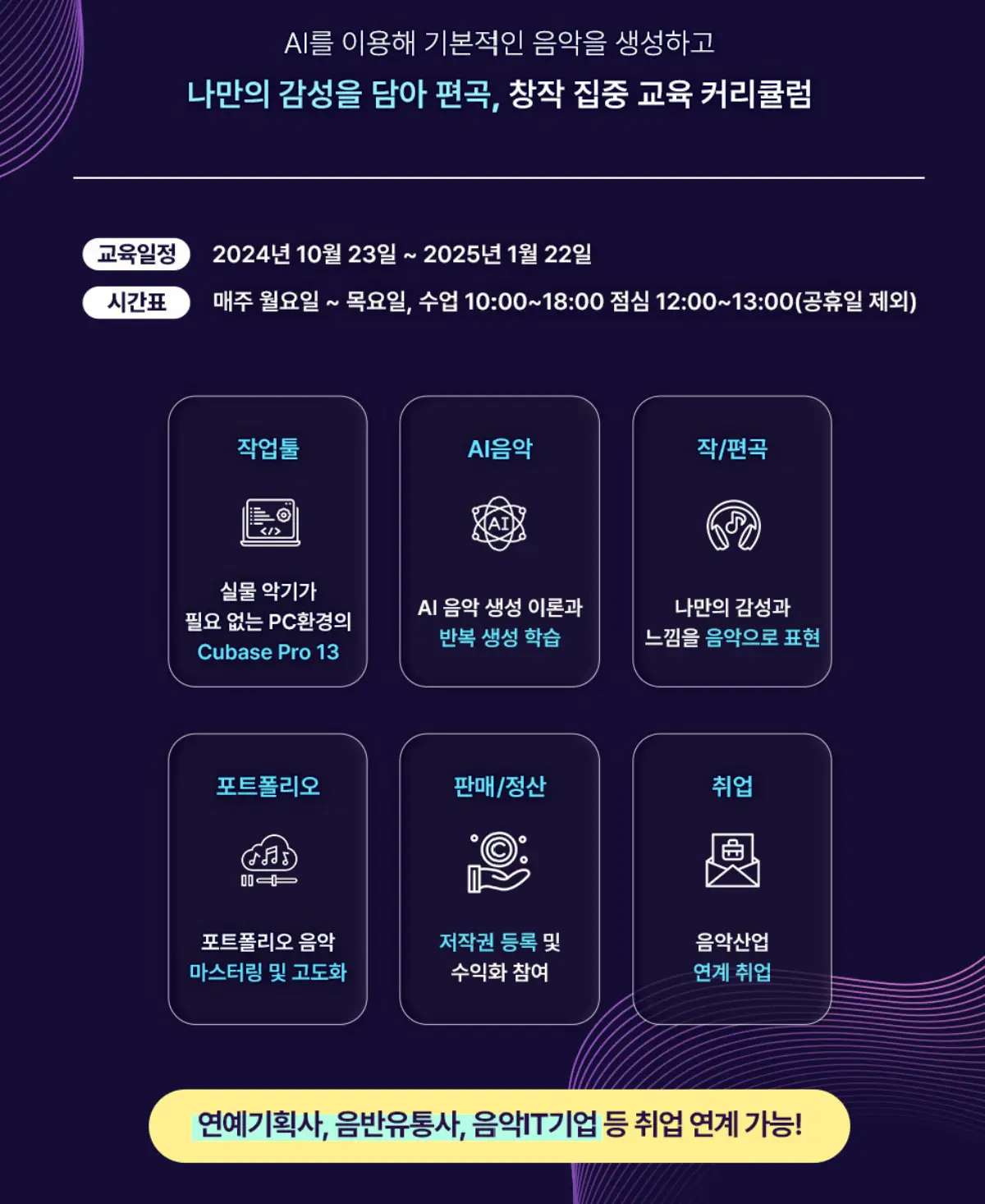 음악창작에 관심이 있고 취업에 의지만 있으시면 됩니다.
