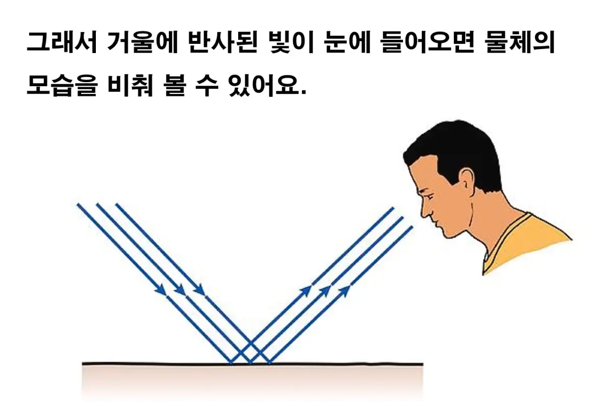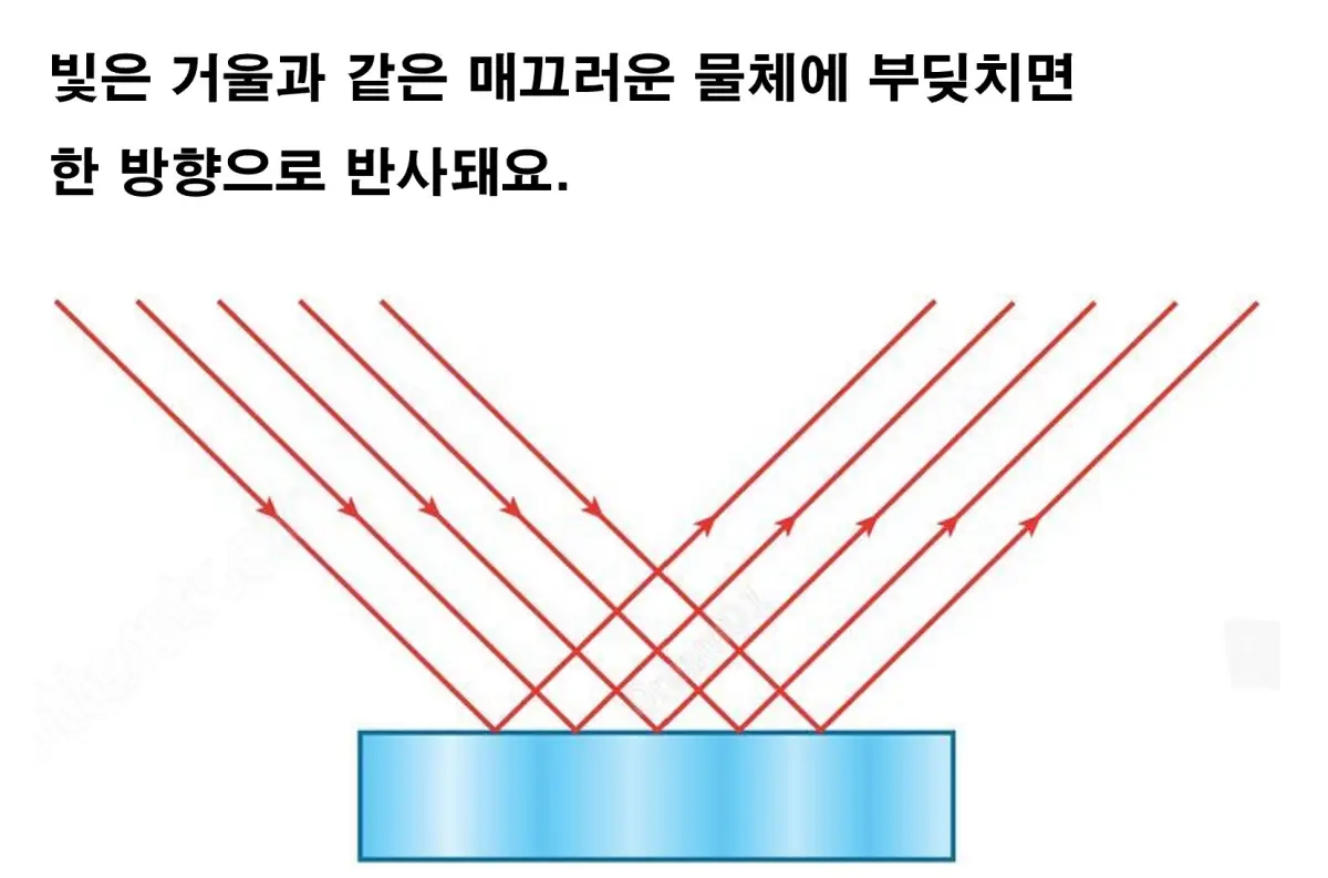 빛이 나아가다가 평평한 거울에 탁!! 부딪히면
