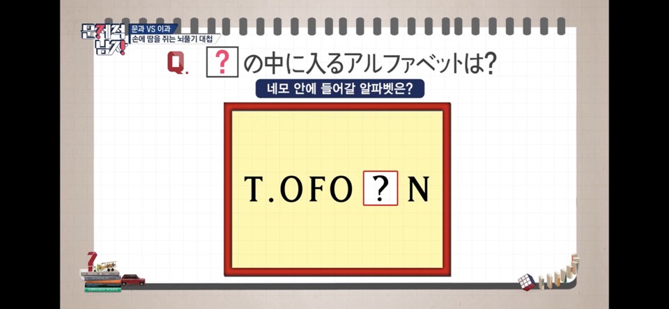T.OFOFN 이 되며 ? 안에 들어가는 알파벳은 F 가 되네요~