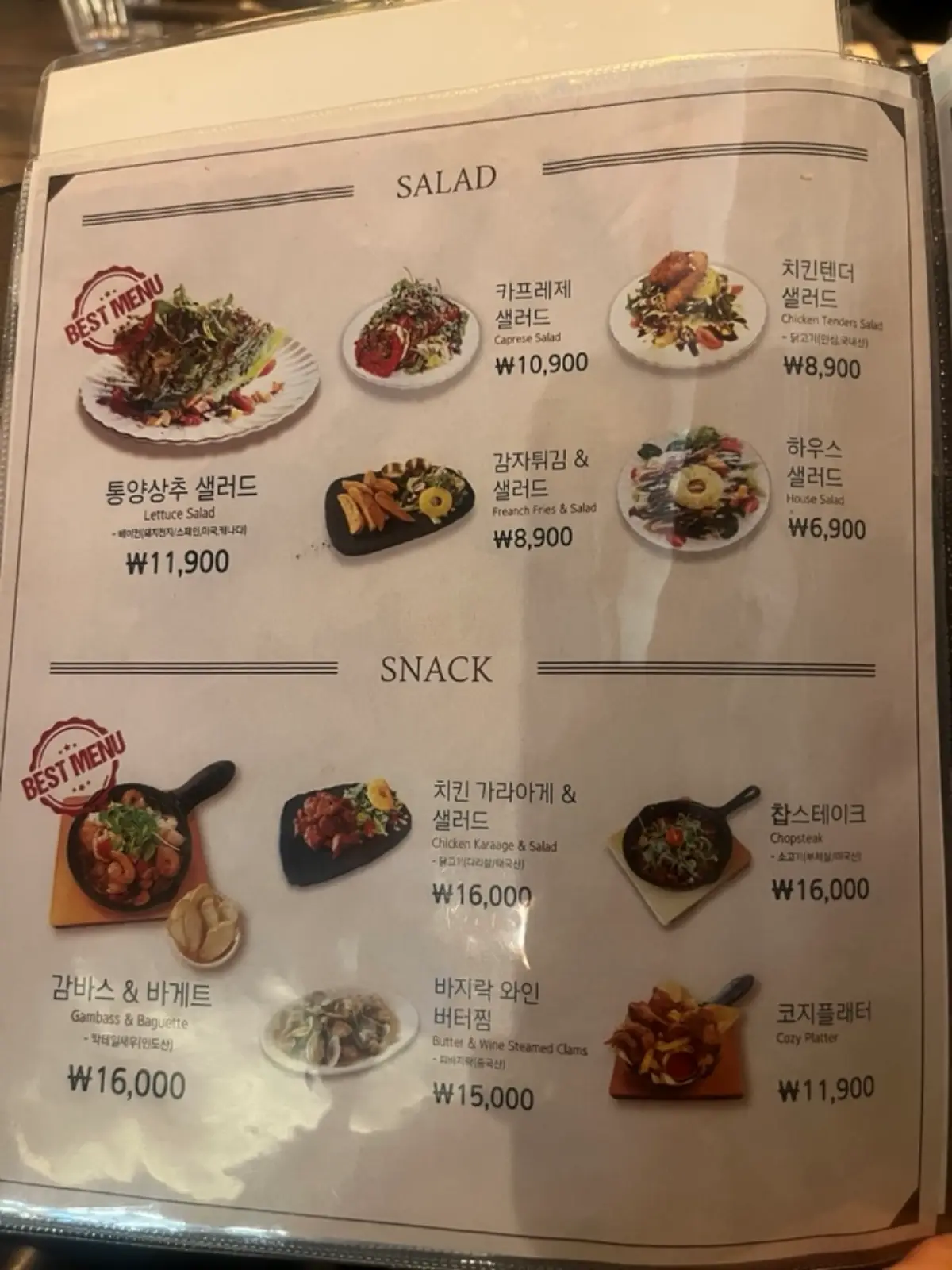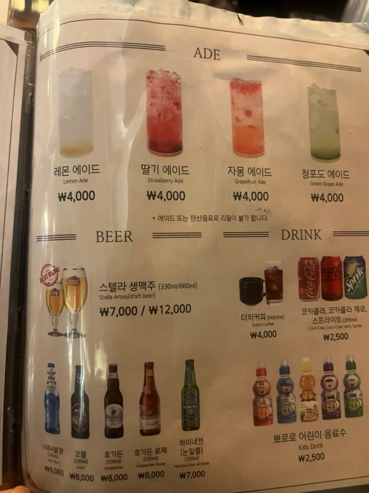 아니나다를까 생맥주도 있고, 분위기를 살려주는 와인도 있어요.가격도 부담스럽지 않고 종류도 많아서 이것저것 골라먹는 재미도 있어요. 그해서 저희는 4명이 갔는데 6개 시켰어요^^