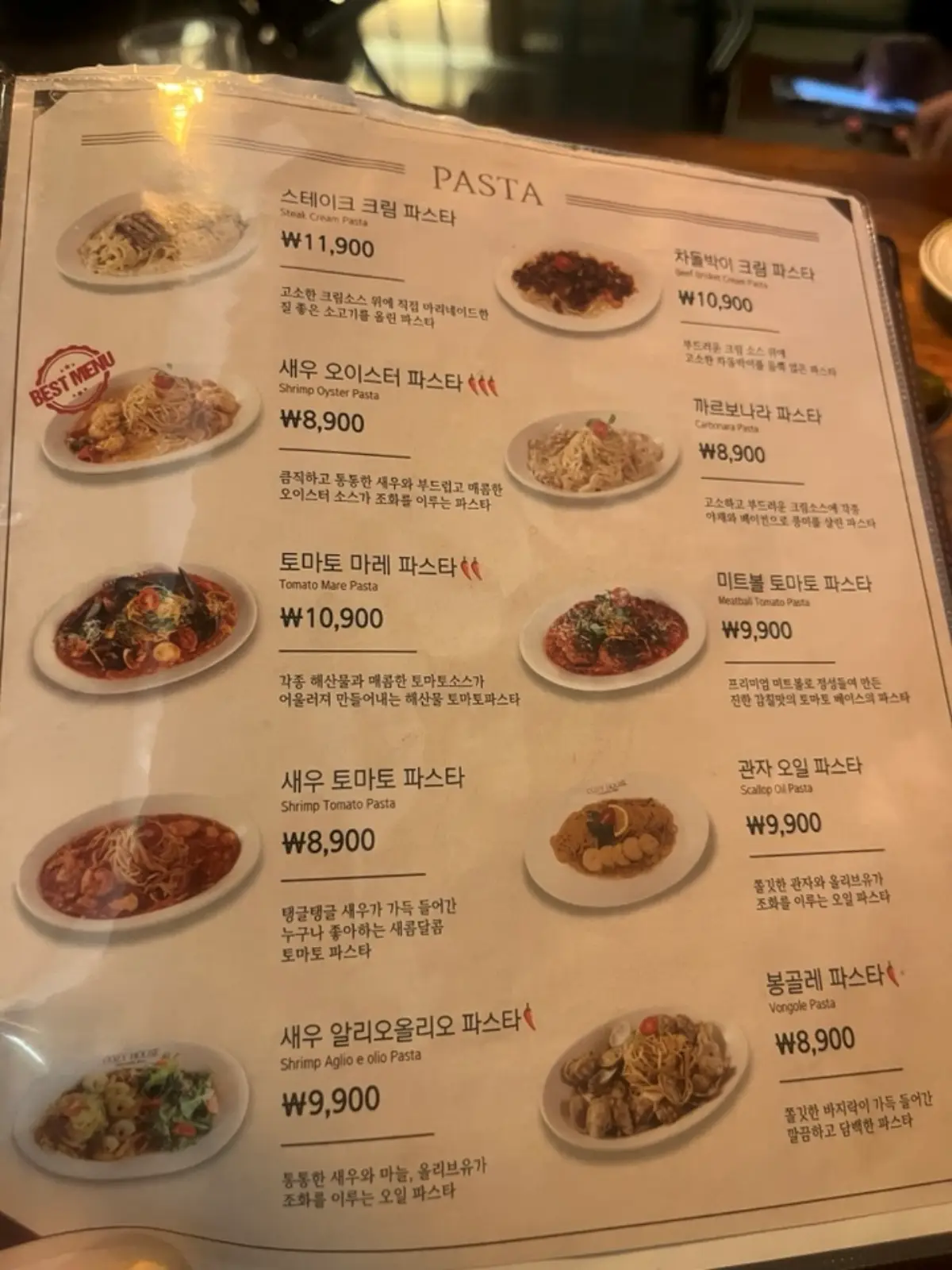 코지하우스는 많은 사람들이 좋아하는 파스타부터 스테이크,필라프,리조또 등이 있었습니다. 우리가 잘 알고 있는 메뉴들이죠. 크림파스타도 있고 토마토 파스타도 있네요^^