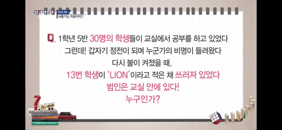 특히 오늘 문제는 교실에서 일어난 사건에 대해 범인을 찾아보는 문제인데요.