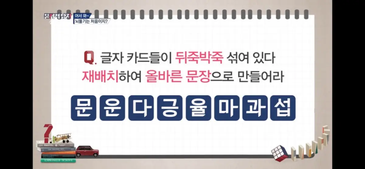밑에 보이는 문제는 글자카드가 막 기멋대로 섞여져 있습니다.