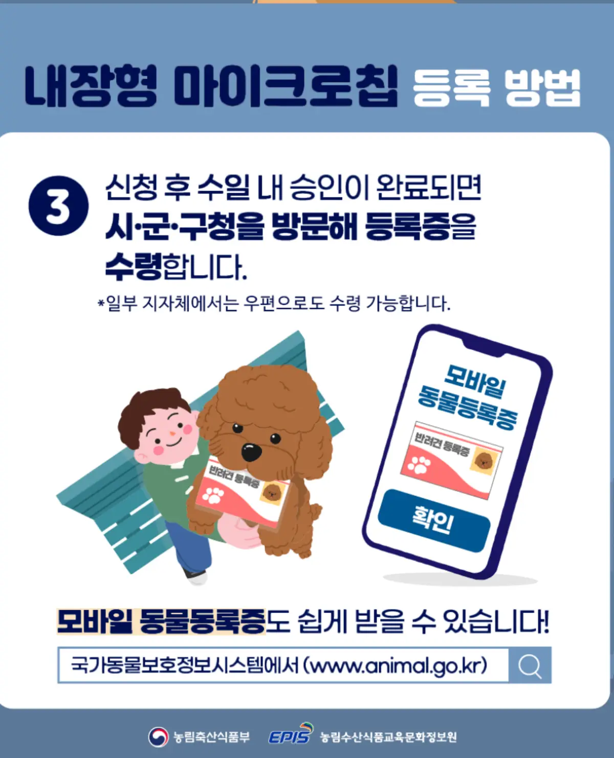 국가에서 지정한 동물등록 대행기관에서 등록을 하시면 됩니다.
