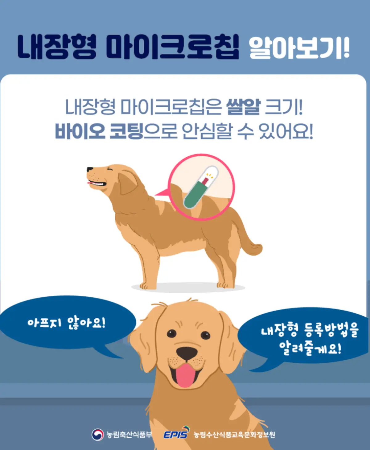 동물등록에 사용되는 마이크로칩(RFID)라고 하며 무선전자개체식별장치라고 불리는데
