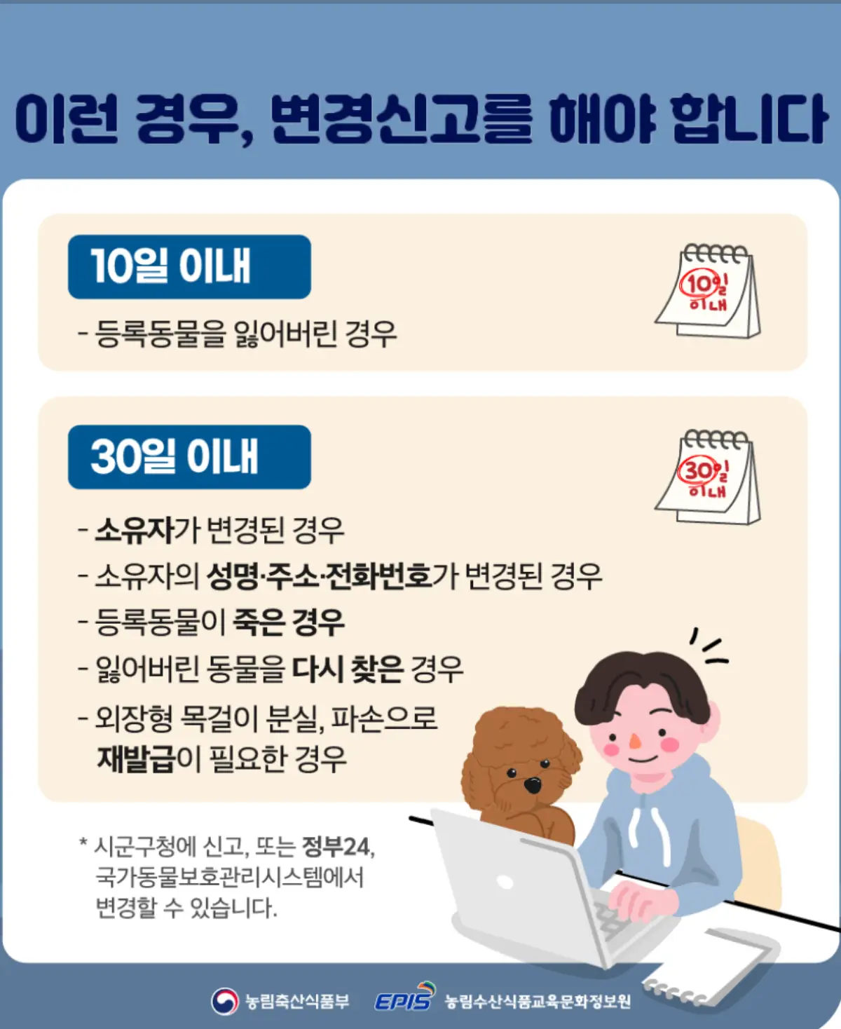 50만원 이하의 과태료가 부과되니 소유자나, 주소, 전화번호등이 변경되거나