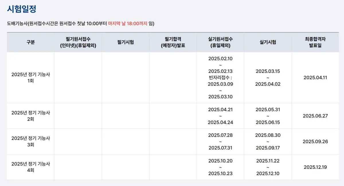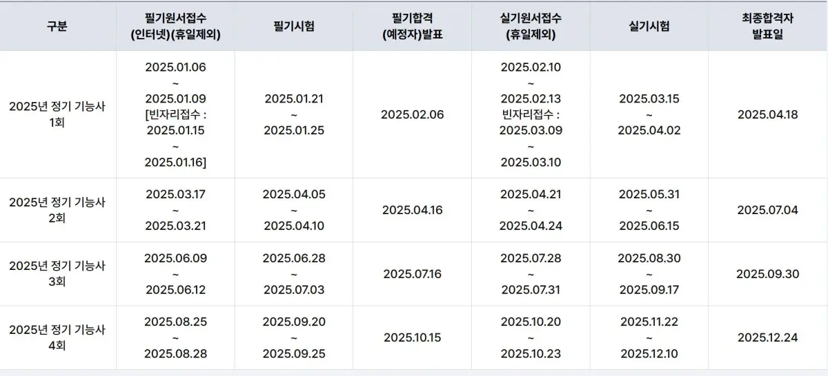 연간 국가기술자격 시험일정