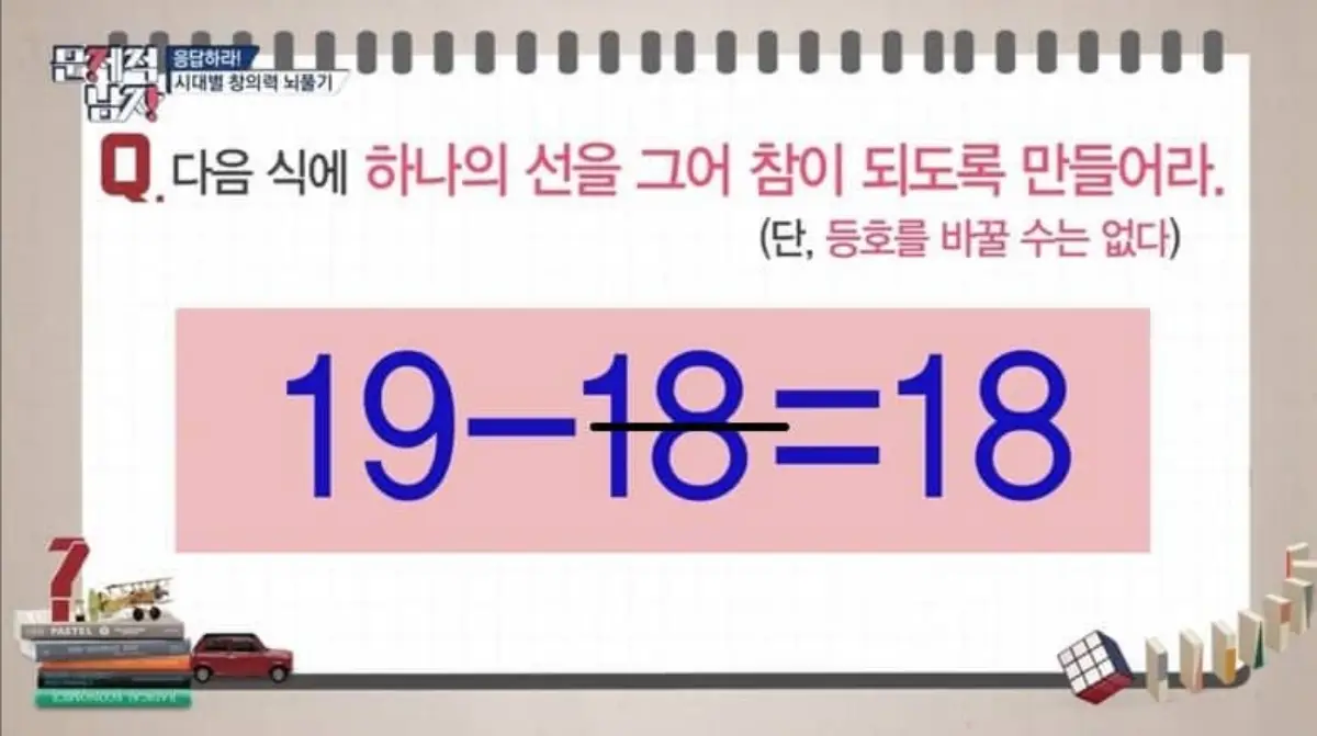 처음 이 문제가 나왔을 때 등호에 선을 그어서 식이 참이 되도록 만들었는데요.