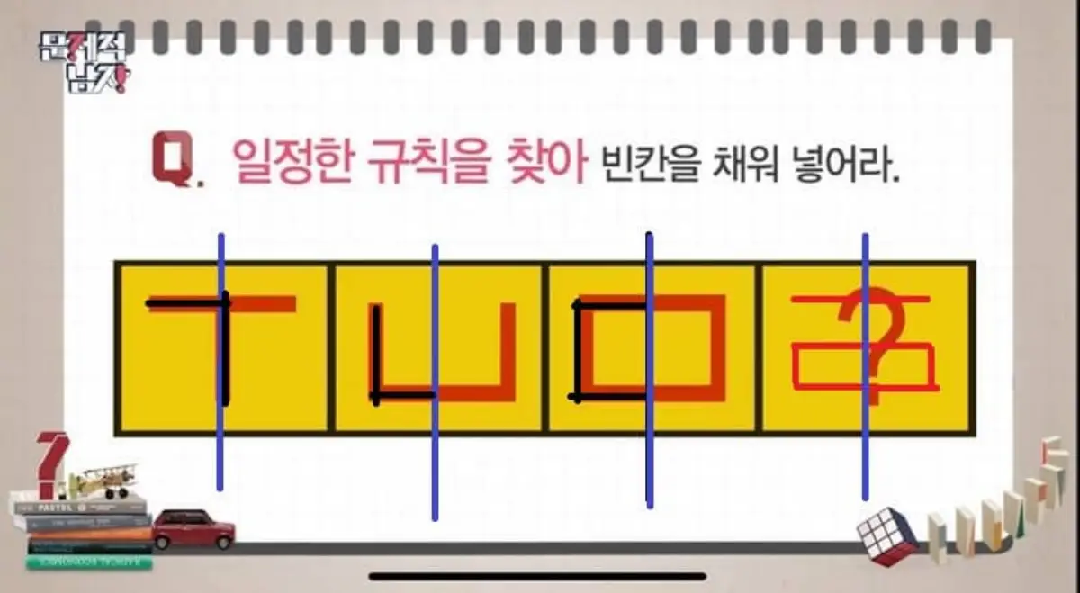 선 긋기 하나만으로 푸는 문제가 첫 번째는 한글, 두 번째는 숫자였다면,