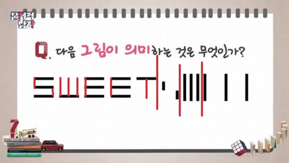 나누어진 선을 잘 보시고 가로가 합쳐 봤더니 영어단어 보이시죠?