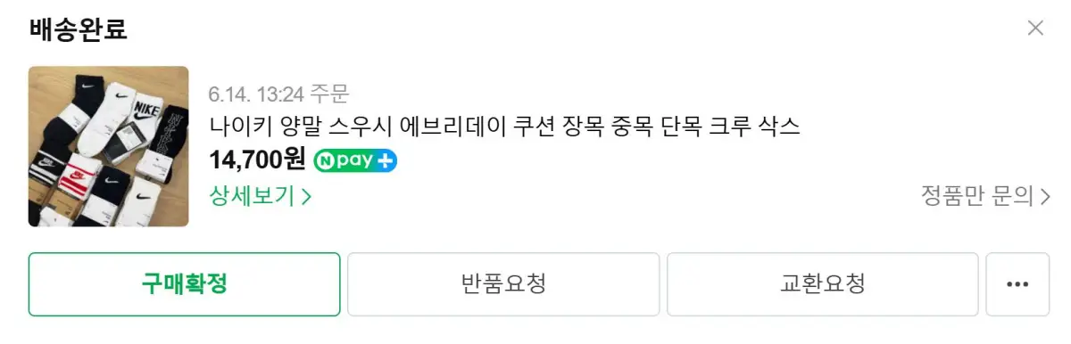 이렇게 나이키 로고가 깔끔하게 들어간 중목양말을 3켤레 샀어요. 3켤레에 14,700원이더라고요.