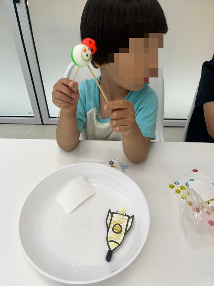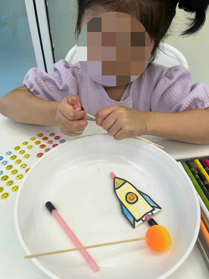 이제 우주선안에 빨대를 끼우고 그 빨대 안에 막대 탱탱볼을 끼우면 완성이 되는데요~