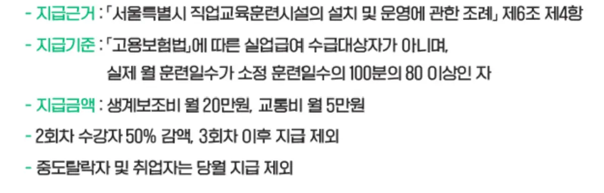 1) 수강료와 교재비, 실습비등 교육훈련비 무료(일부 재료비는 제외)