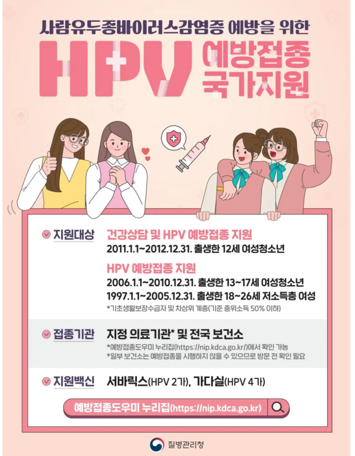 그런데 이제는 나라에서 무료로 예방접종을 해 준다고 하니 2006년~ 2012년 여자분들은